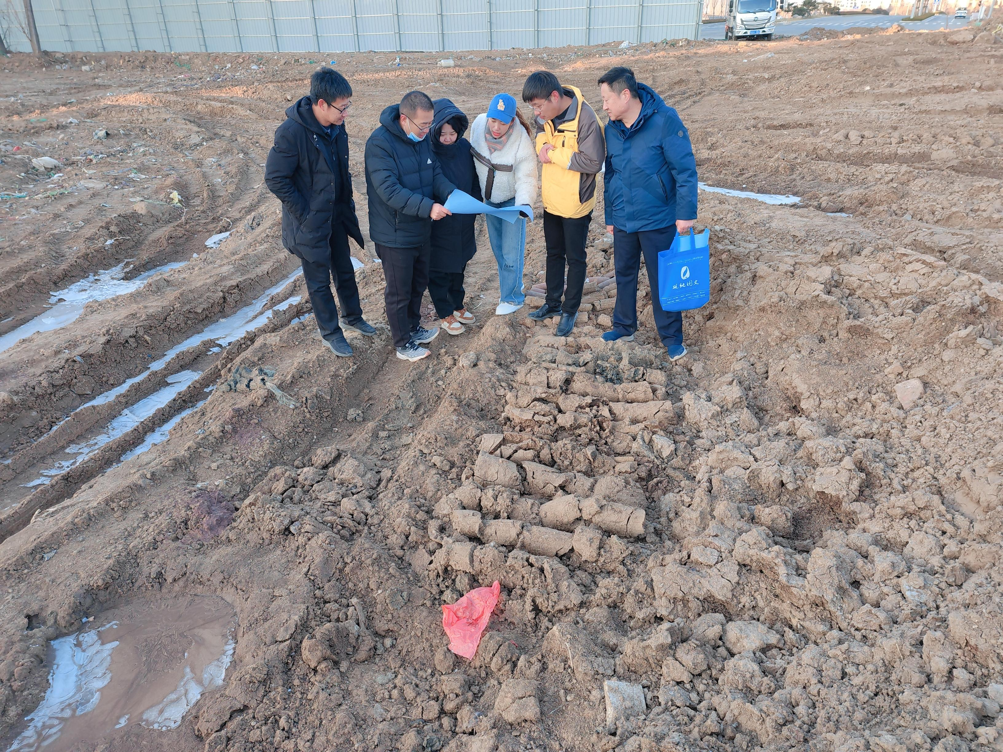 12月21日上午,沂河新区规划建设局工作人员到临沂亲和家源银和院二期建设项目开展勘察外业现场指导。