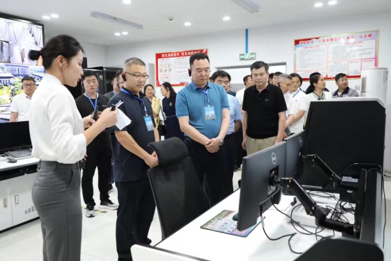 与会人员参观临沭县委新党校消防控制平台系统时的情景。