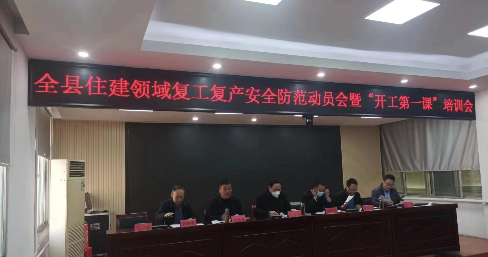 为深入贯彻上级有关会议精神,切实做好安全生产各项工作,确保节后安全有序复工复产,2月1日,平邑县住建局组织召开全县住建领域节后复工复产安全防范动员暨“开工第一课”培训会,安排部署下步重点工作,动员上下全力做好冬春季节的安全生产工作,确保住建领域安全生产形势稳定。平邑县政府副县长、平邑街道党工委书记张东升出席会议并讲话,县住建局党组书记、局长闫光成等参加。