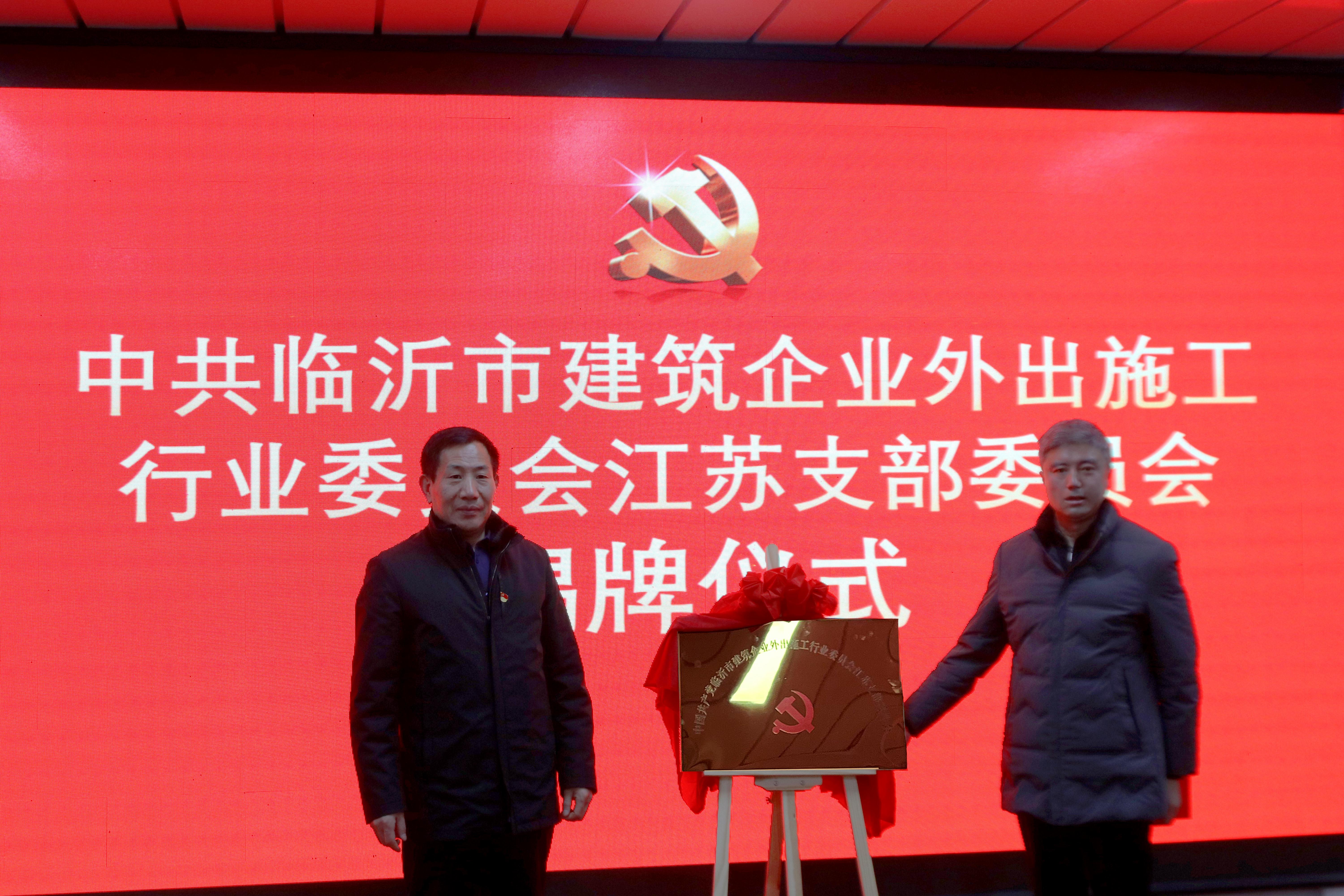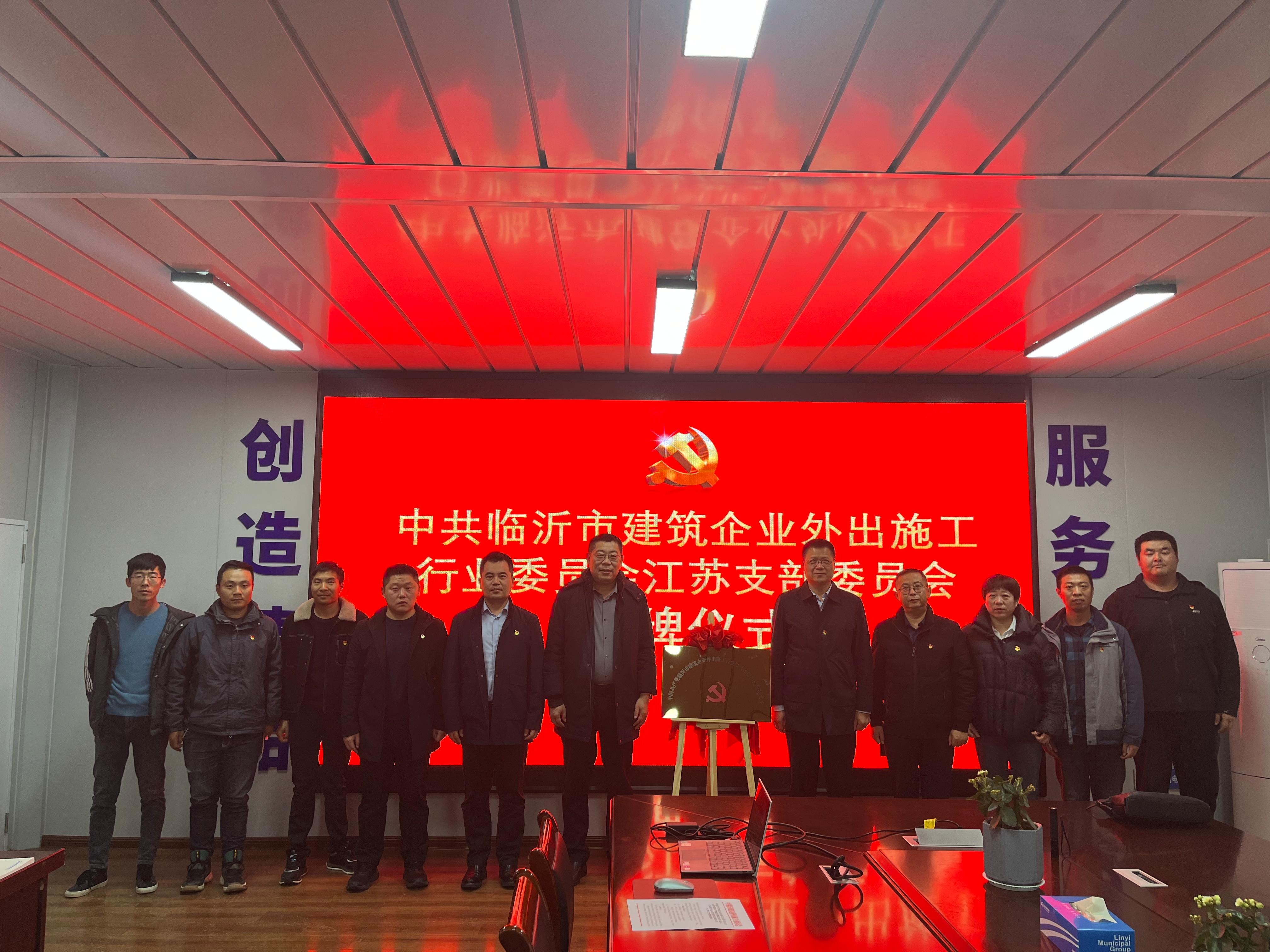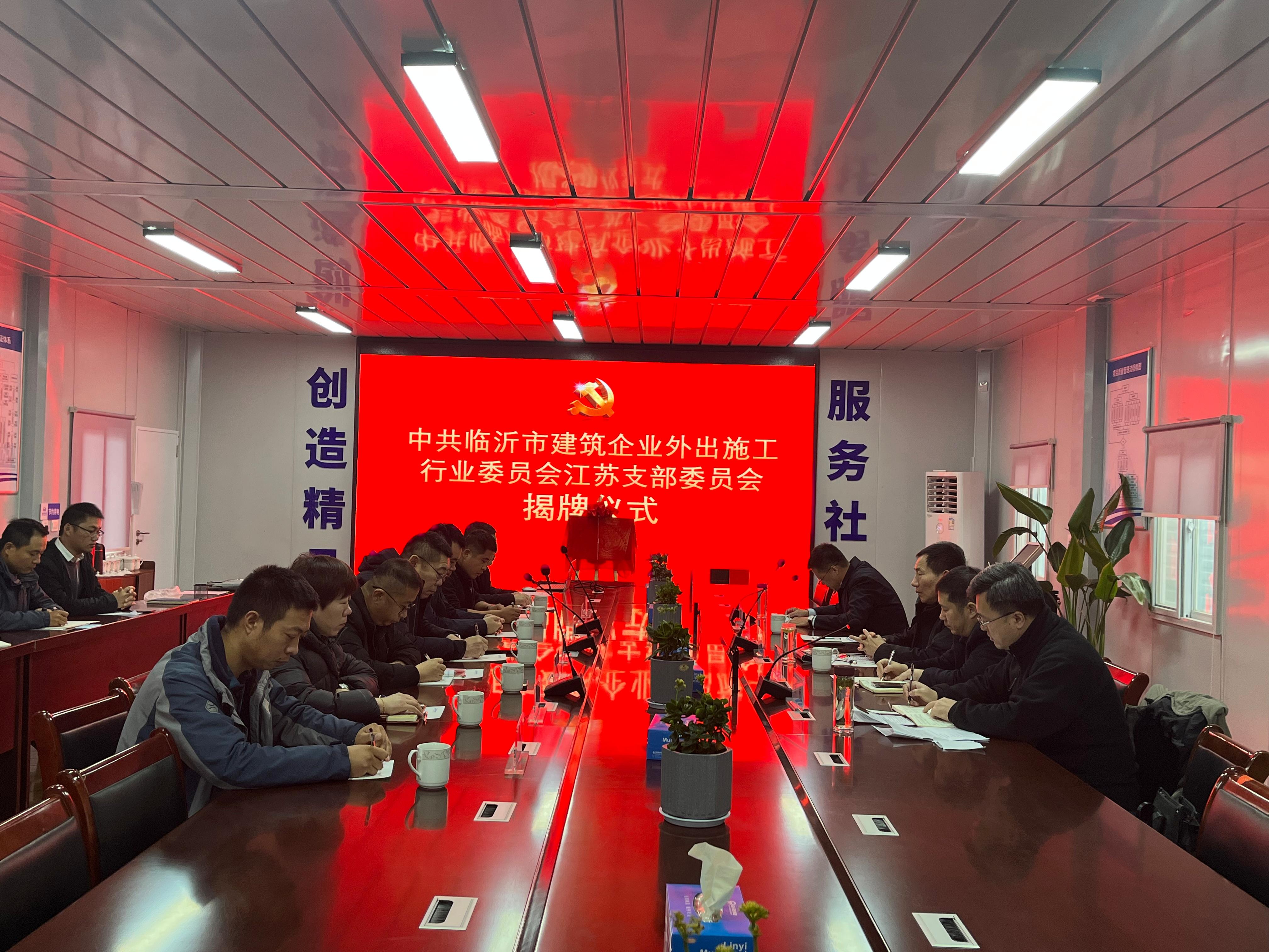 12月14日,临沂市建筑企业外出施工行业党委江苏党支部在江苏省扬州市举行揭牌仪式并召开座谈会。市城乡建设服务中心副主任李峰、扬州市市政建设处总工程师曹勇出席仪式并揭牌,市建筑企业外出施工行业党委江苏支部委员会全体成员参加仪式和座谈会。