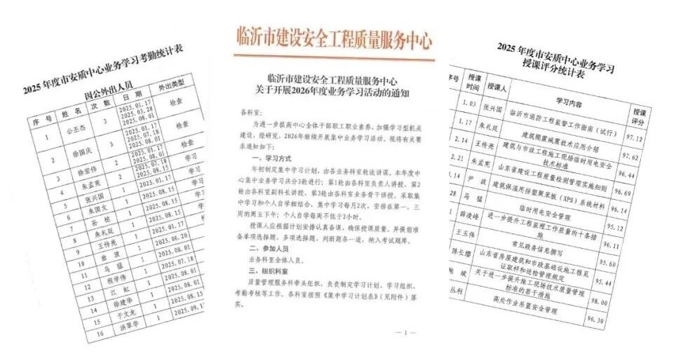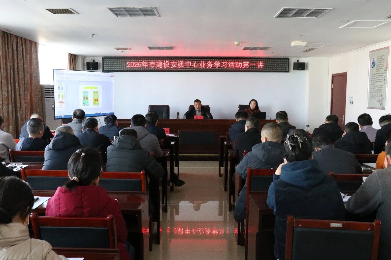 近日,市建设安全工程质量服务中心举行2026年度业务学习“第一讲”活动,中心全体人员参加学习。