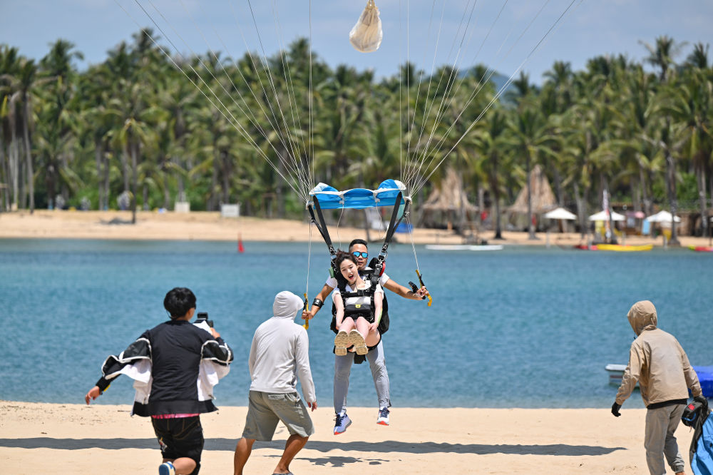 5月2日,游客在三亚塔赫跳伞基地体验跳伞。新华社记者 郭程 摄